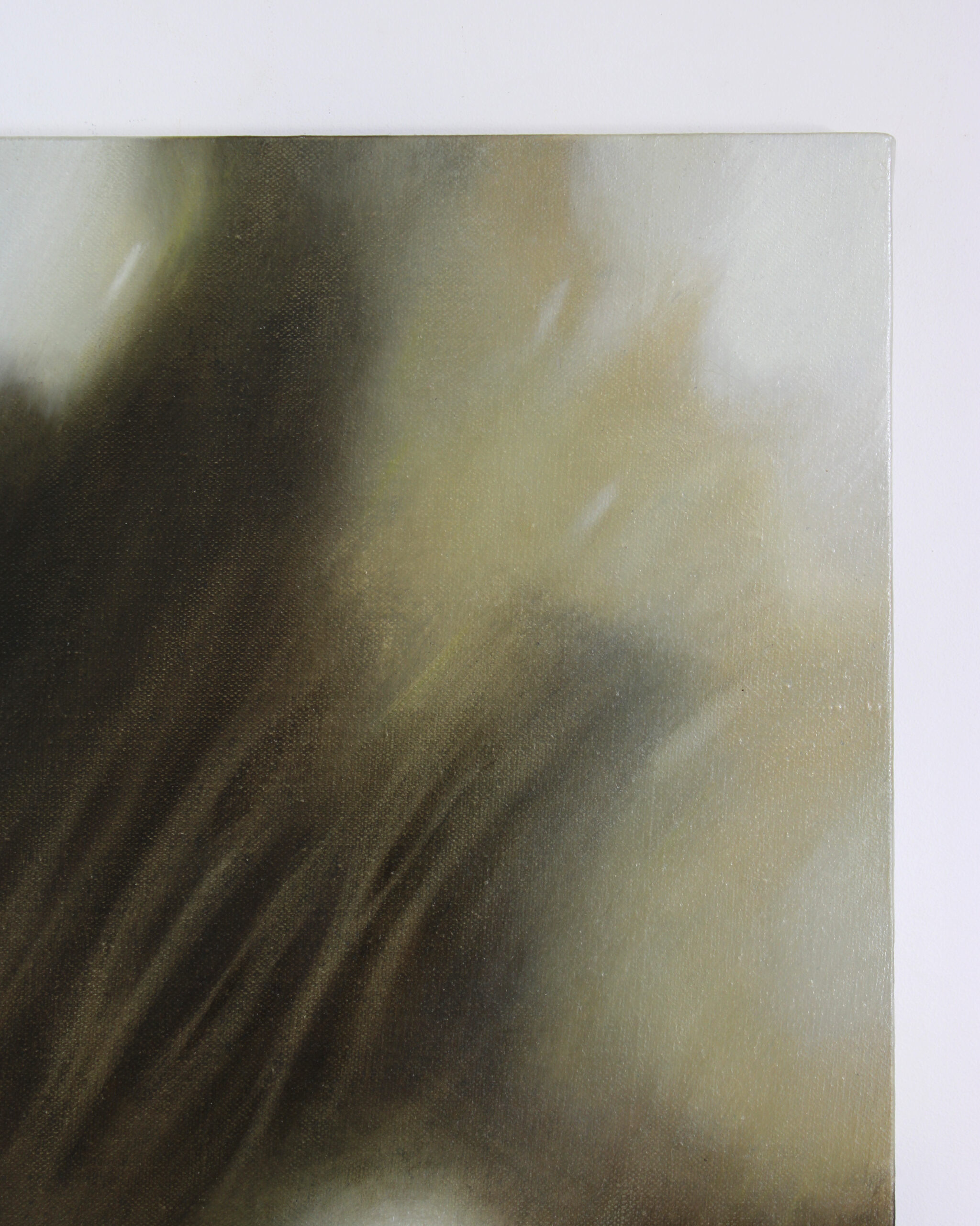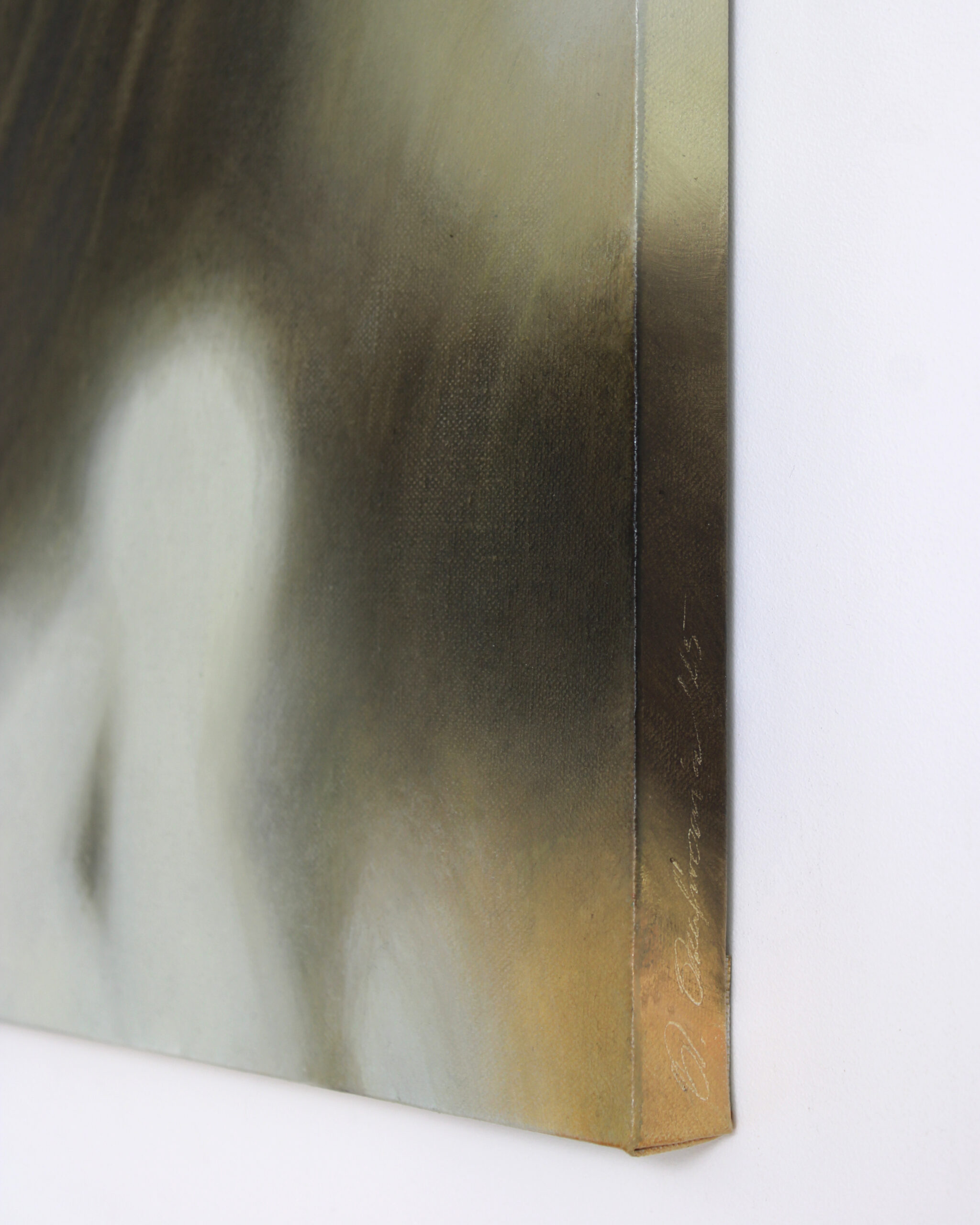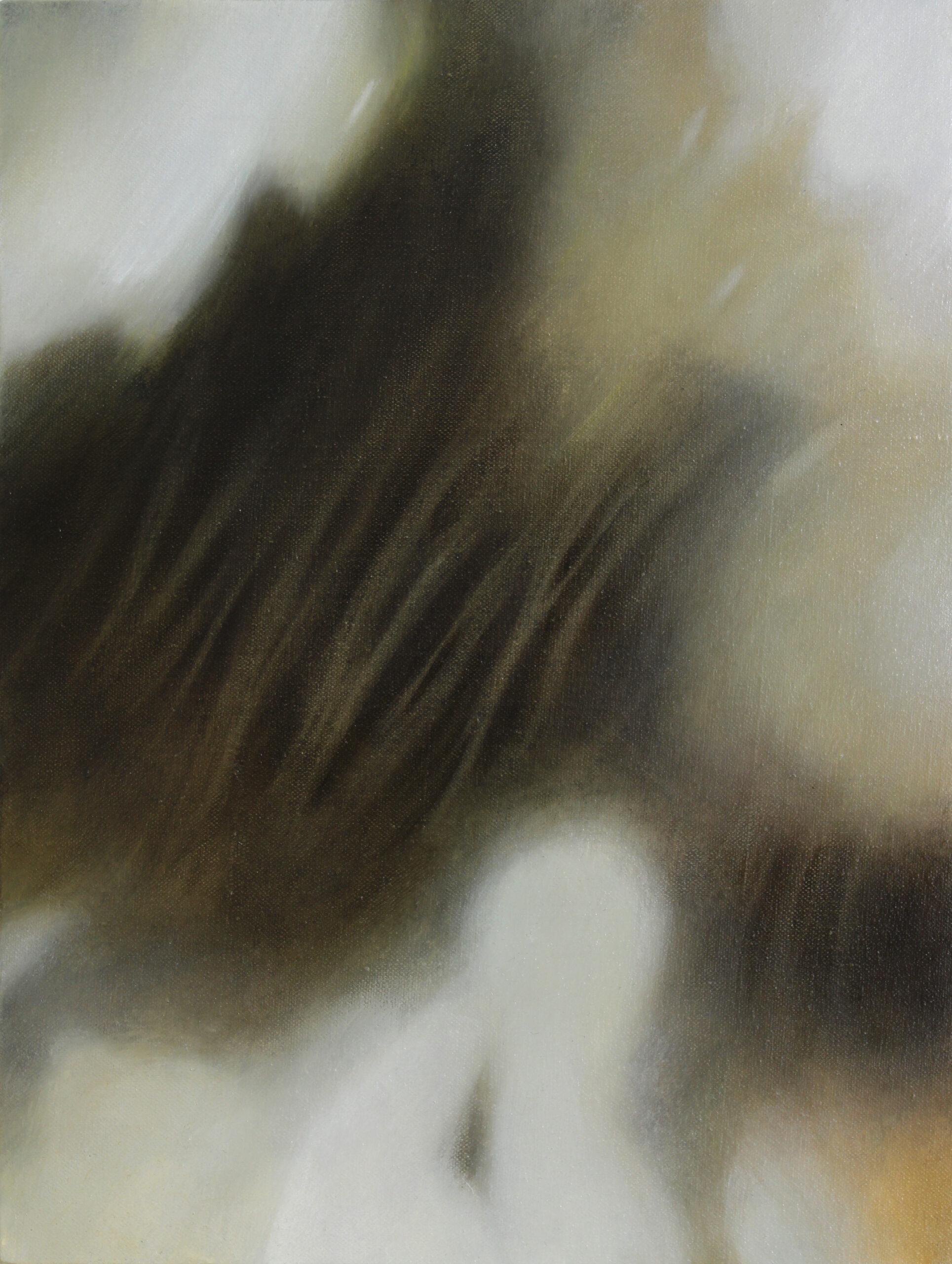Obraz W cieniu jabłoni 1 należy do cyklu Kompozycji Wrażliwych, w którym inspiruję się delikatnością, ulotnością myśli i swobodą, na którą pozwalają mi użyte w nich techniki. To również moje powroty do wspomnień, marzeń i snów, także tych dziecięcych.